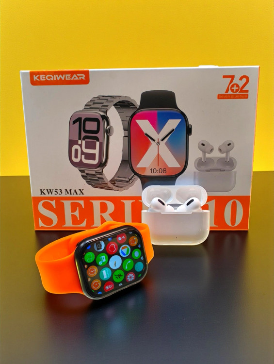 ساعت هوشمند KEQIWEAR مدل KW53 Max Series 10 همراه با ۷ بند رنگی و ایرپاد پرو