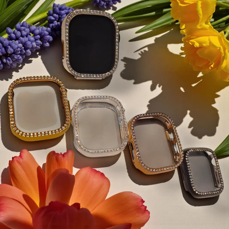 کاور دور قاب نگیندار اپل واچ با طراحی ظریف و نگینهای براق، جلوهای لوکس و شیک به ساعت شما میبخشد. این محصول از پلاستیک سخت و مقاوم ساخته شده و بهخوبی دور قاب ساعت را پوشش میدهد تا آن را از خط و خش و آسیبهای روزمره محافظت کند.