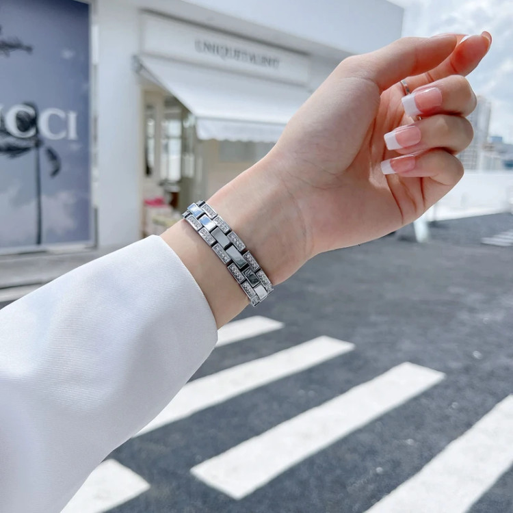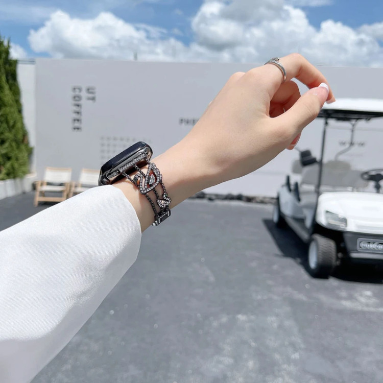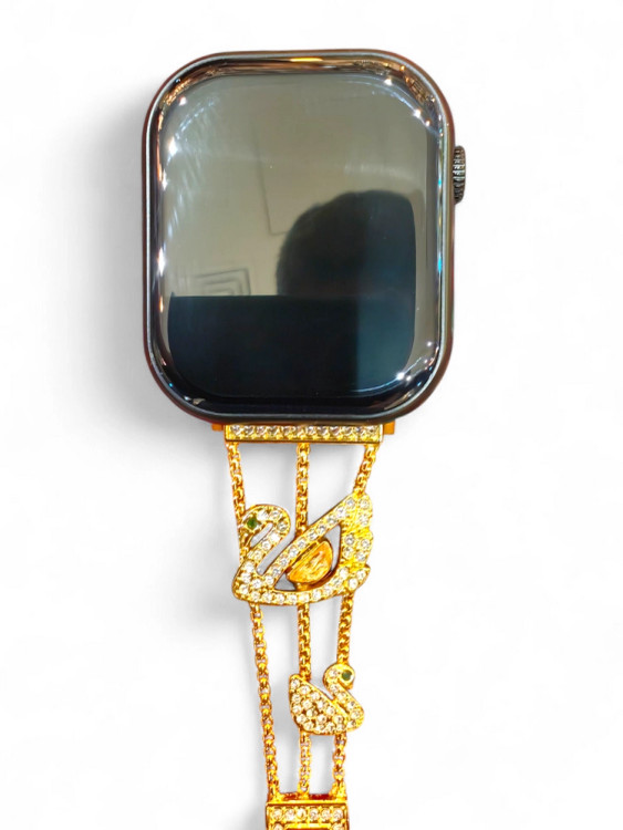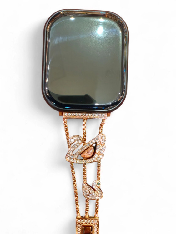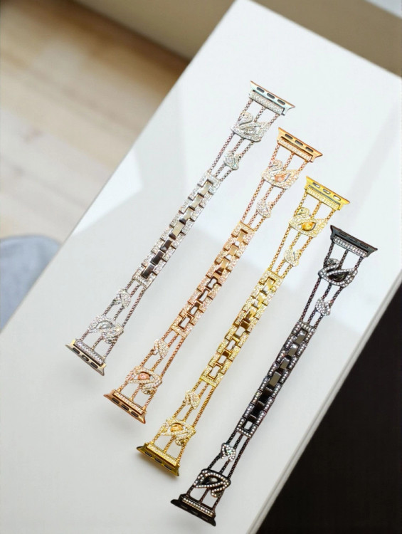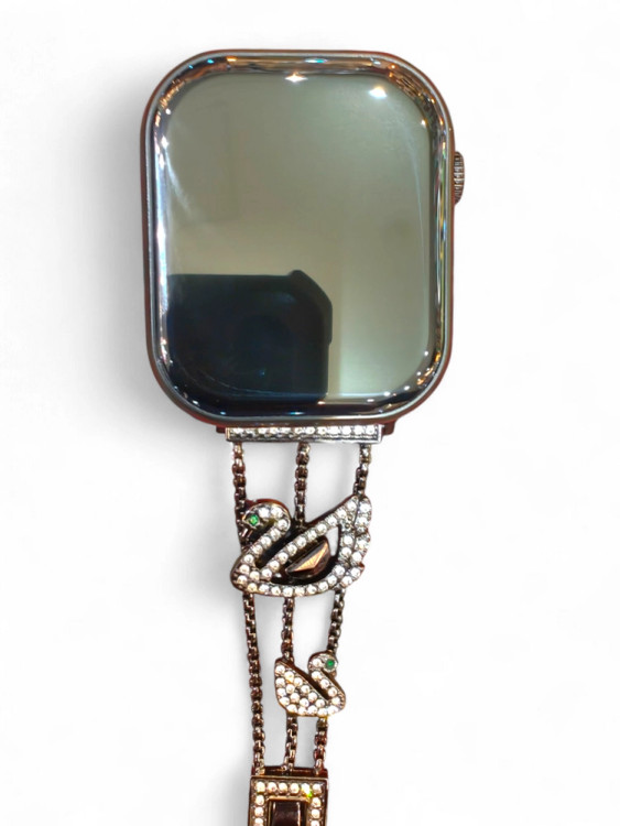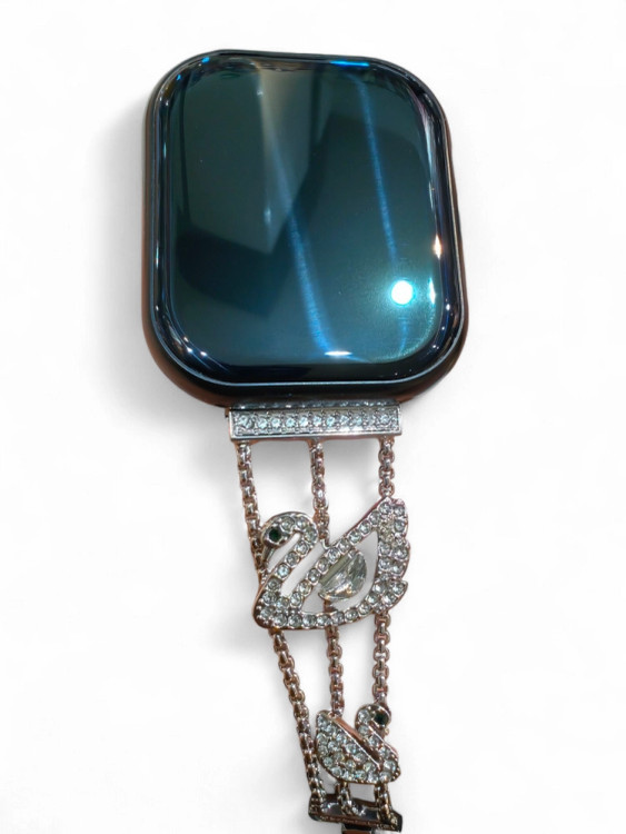 بند Luxury Glitter Swan Strap ساخته شده از استیل ضد زنگ می باشد. قابلیت تنظیم با انواع مچ دست را دارد. توجه داشته باشید فقط و فقط با اپل واچ های سایز ۳۸ و ۴۰ و ۴۱ میلی متری موجود می باشد و با سایر اپل واچ ها سازگار نیست. نگین های روی بند ماندگاری بالایی دارند و به مرور زمان نمی افتند. حالت ظریف بند و همچنین قو های روی بند ظاهری شیک و خاص را به بند می دهند. محل اتصال بند با اپل واچ فلزی می باشد تا اتصال محکم تری برقرار کند و نگران باز شدن آن نباشید ، این بند فقط برای خانم ها و دختران مناسب می باشد.