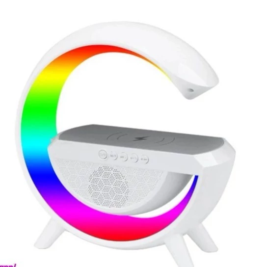 گجت موردنظر 4 کاره( شارژر، بلندگو، ساعت کوکی، چراغ خواب)،دارای 256 حالت رقص نور مختلف ،دارای اسپیکر بلوتوثی برای پخش موزیک با کیفیت و بیس عالی به همراه رقص نور بسیار زیبا ،دارای نرم افزار کنترل و امکان وصل شدن به گوشی های اندروید و آی او اس و همچنین دارای نمایشگر دیجیتالی ساعت و امکان کوک و آلارم ساعت هست که قابلیت های زیاد و جذابی با توجه به عملکردهایی که ذکر شد از قبیل : امکان پاسخ تماس و رد تماس ها بدون برداشتن گوشی،چراغ خواب به همراه رقص نور و تنظیم رنگ و شدت نور به طور دلخواه با وجود سنسور هوشمند نور محیط،امکان کنترل از طریق گوشی و نرم افزار، فست شارژ، پاسخ تماس هوشمند دارد. این بلندگو دارای میکروفون داخلی می باشد. نام اپلیکیشن مورد نیاز برای کنترل گجت Happy lighting-life with smartمیباشد که از طریق اسکن بارکد روی کارتن قابل دانلود و نصب میباشد. ولتاژ ورودی 12ولت/2.5آمپر ///خروجی بیسیم 5وات،7.5 وات،10وات و 15 وات ///قدرت صوتی بلوتوث 3 وات////256 حالت رنگ/// فاصله انتقال 2 تا 6 میلی متر///راندمان شارژ 75% ///فرکانس کاری 100-205کیلو هرتز///سایز 22.5x8.2x23سانتی متر///وزن حدود 500گرم