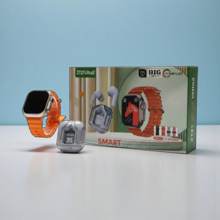 ساعت هوشمند مدل ZT21 ULTRA2 به همراه ایرپاد شیشه ای و 4 عدد بند