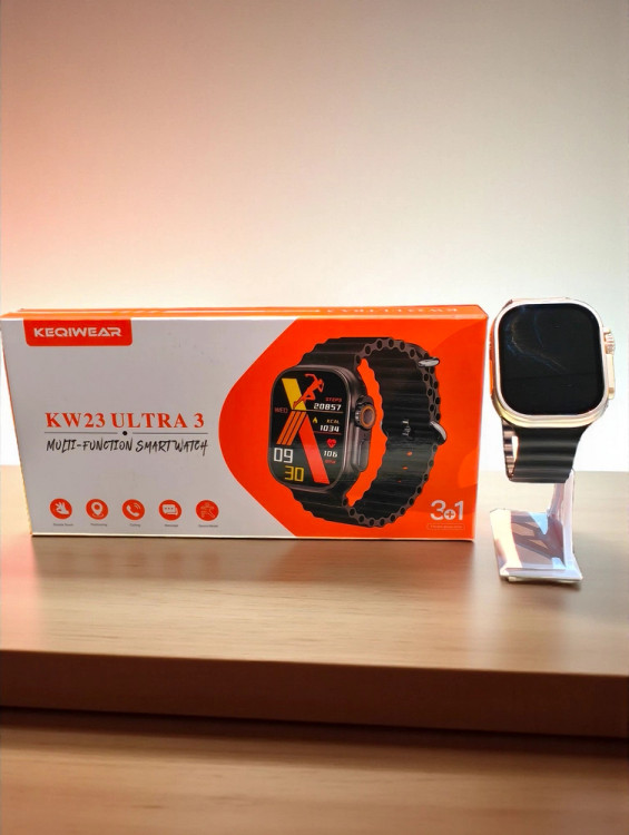 ساعت هوشمند KEQIWEAR مدل KW23 ultra 3 همراه با ۳ بند رنگی و تماس بلوتوثی